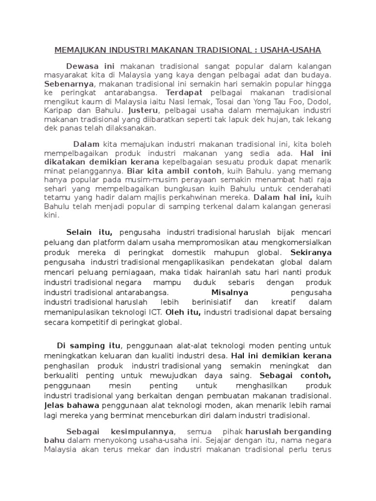Terdapat pelbagai makanan tradisional mengikut kaum di Malaysia. 3 CONTOH KARANGAN Ayat Rangsangan Fenomena jerebu yang melanda negara kita bukanlah satu isu yang baharu tetapi telah lapuk. Pdf Pelancongan Gastronomi Dan Hubungkait Dengan Makanan Tradisional Melayu.